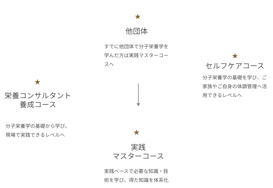 養成コースや実践マスターコースでは、初学者の方から、栄養カウンセラーとして活躍されている方まで、様々な方が対象です。